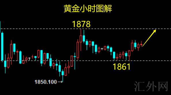 黄金,年初价格自俄乌矛盾避险冲顶到2070,并在2075-2070构筑平行顶部形态抛压到1890;4月又一次拉高1998后抛压,周初保持下跌到1850止跌回弹;文中强调4H图呈现上升信号,预计今天回撤蓄力后还会冲顶1878-1880;