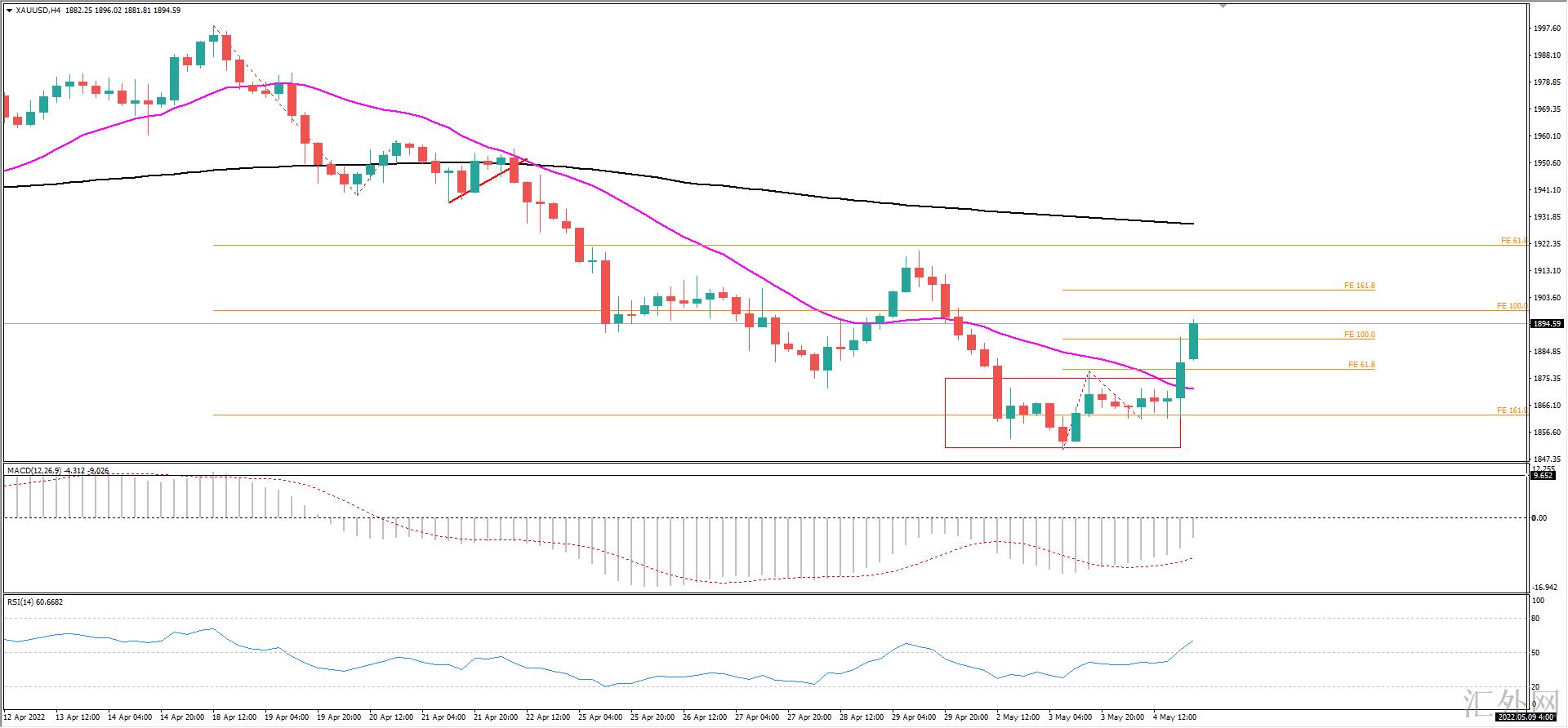 美联储加息政策发布,符合市场预计的50基点加息,但是美联储主席鲍威尔表明接下去并没有会在今年斟酌单次会议加息75基点。同期,鲍威尔谈到会以中性利率为计划,并开始斟酌缩表。差于市场预计的鹰派下,股市,黄金,原油等价格大幅上升。同期昨日发布的ADP报告为24.7万远差于预计的38.2万,这也是黄金大幅攀升的催化剂。本人任然保持昨日的看法,买方进攻号角随时吹响,望投资人紧密留心星期五的非农就业报告发布。