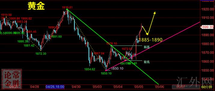 从技术向上瞧:前期降幅下探出新低,后市低点止步回弹走阳线,短时间不见回踩,在1890/81区域稍有停留,后面连续升高,短时间买方行情强劲,那么跟单层面就要顺势参与,而非逆势布局。短时间关注回踩机会,升幅总会有停滞的时机,同期有回踩机会,回踩的强度不是很大,就表明买方依旧有余力,所以日间以回踩机会跟多为主,短时间上涨到1900关键点位,那么回踩机会注意1890/81早间的低位位置,回踩止步可跟多持续看上涨!