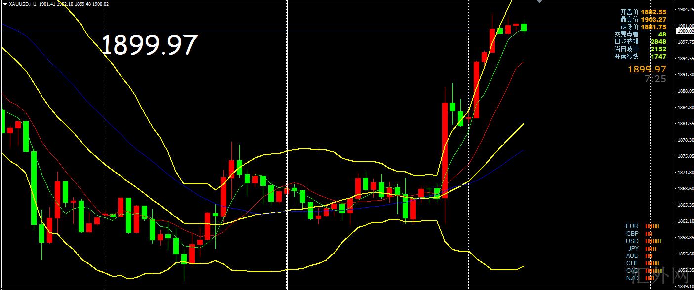 FOMC声明说“高度重视”通货膨胀风险,预期“持续”加息是合适的。在随后的美联储主席鲍威尔发言中,也表明通货膨胀过高,黄金迅速下探日低位1861左右,但随后鲍威尔显著不愿意在最近内以更大程度加息,他称75个基点的加息不是委员会“乐观”斟酌的事情。此话代表着他消除了加息75个基点的机会。市场行情开始反转,美元指数闻讯走跌,镁股攀升、收益率曲线陡峭,美债短时间收益率痛跌,恐惧指数VIX痛跌,黄金也开始强劲上升,最多逼差不多1890美元关键点位。