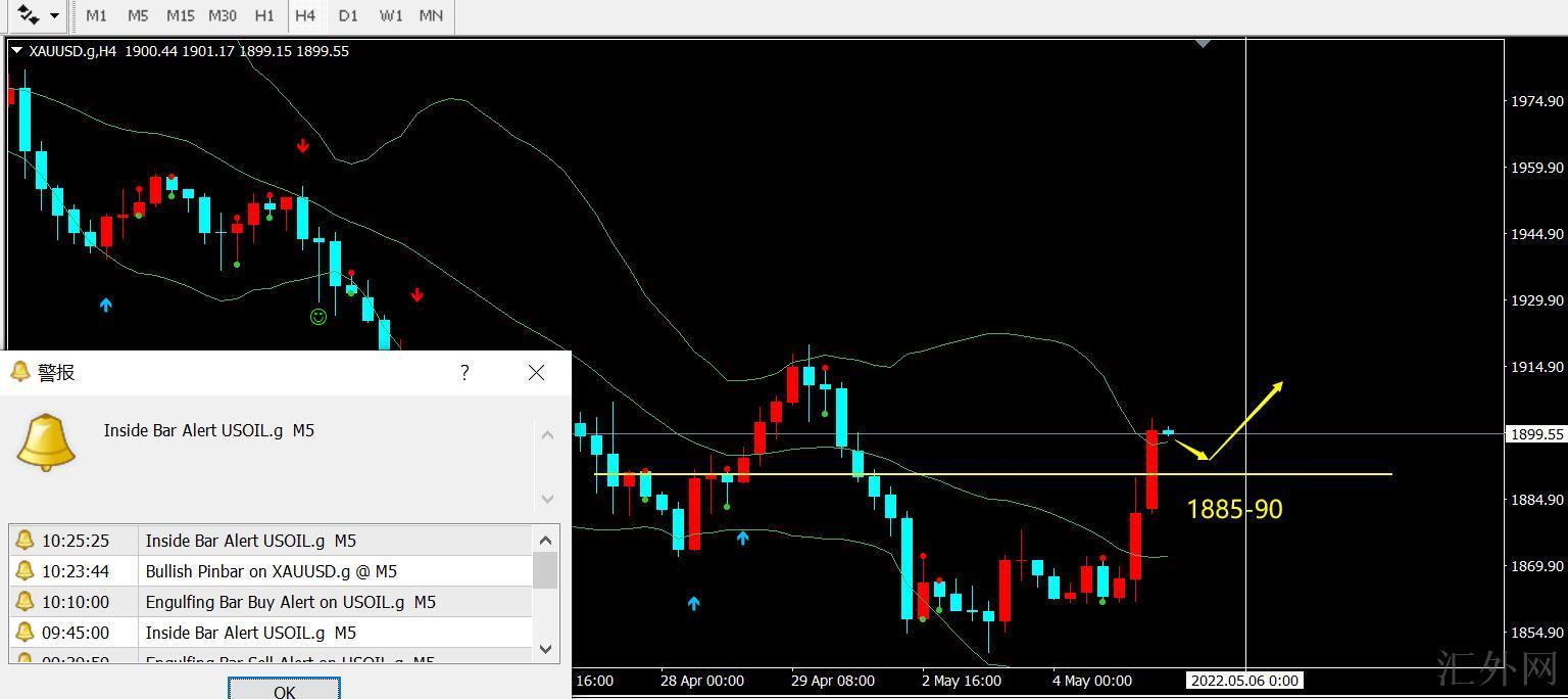 支撑注意1885-90左右看多。 2022.5.5号,下午15:35分公布