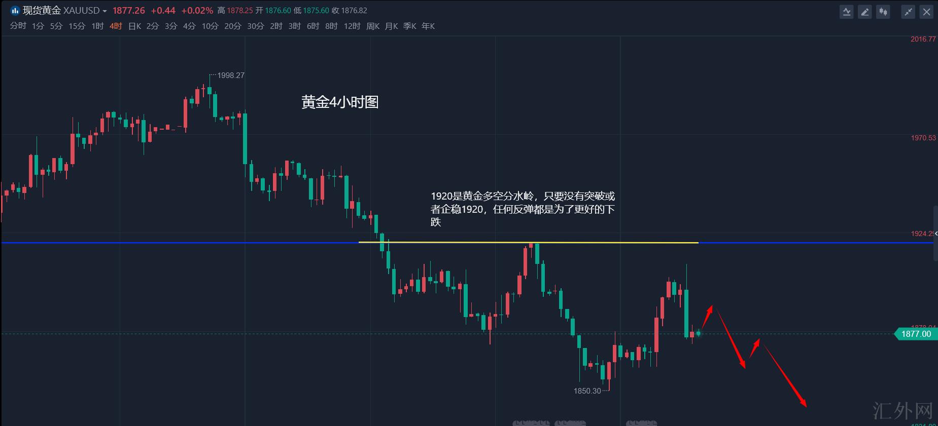 黄金利率会议后暴涨,但是最终没有击穿1920的阻力位置,这是黄金中线多空分界线位置,此位置下黄金依旧看空行情,而且今日是大非农,今日黄金假使不能击穿或者立住1890上方,买方上升衰竭,卖方重掌主动!昨日美盘时段黄金冲顶回调,最低刷新1872一线,那么短线行情转跌,我们及时的调动思路,目前黄金的阻力是1895名置,回弹依托此阻力位置空!黄金冲顶未能击穿压力,此次是回弹,不是翻转!依旧是卖方下挫行情!