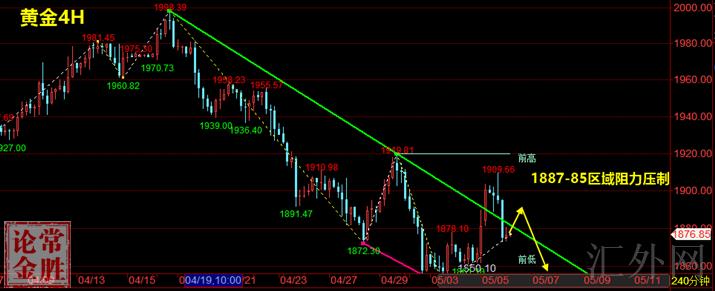 市场用一天时间,掐灭了买方幻想,美联储5月议息会议结果的巨大长期有好处空头影响,将开始连续发威。5月的买方注定是没有期望的。昨日黄金的长影阴线,已经提示了短时间回弹的力量是这样脆弱。预期黄金再也没有机会重回1900美元了,就像4月18号我们曾经预言2000美元将组成年内次高位一样。其实这周,我们的分析研究数据对黄金交易市场中期技术形态分析具备很强的平稳性和预期性。我们一直强调月线的双顶形态对将来行情的决定性。趋势上,计划起码指向1680美元一线。而短时间显现了阶段性的回弹,我们也觉得不会有太高的状况。而昨日美国股的暴跌,已经检验出了市场对美联储加息的长期有好处空头影响。所以我们觉得,黄金短时间的震荡性不会保持太久。经历对1910美元的回测表明卖方冲击强度,则有助于黄金更深一步下破前浪低位1850美元一线。我觉得以往两天黄金的回弹,首要是前期卖方获利回补致使的回弹,并不是买方主动进场。而当卖方又一次于1880-1900美元区间进场布局时,则有希望助推黄金向1800美元平台回调。