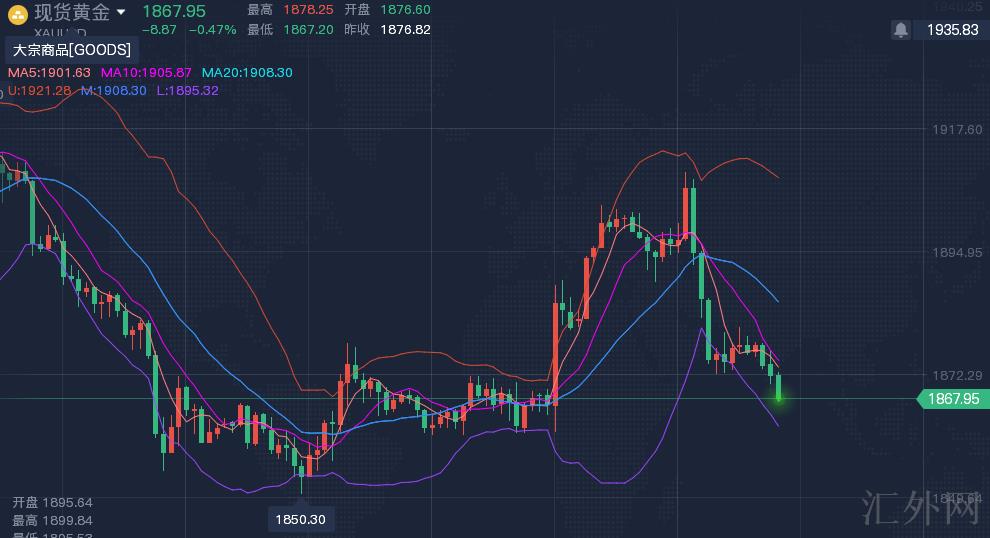 黄金消息面解析:星期四(5月5号),市场公然对美联储主席鲍威尔加息75个基点的观点提议质疑,将6月会议上加息75个基点的预计推涨到差不多83%。受此影响,金融市场恐惧情绪死灰复燃,美元暴涨,黄金现货则自高点暴跌37美元,跌到1870美元关键点位。有投行表示,黄金恐遭受止盈出场打压,上涨趋势不会持久。美国10年期国债收益率日间上升16个基点到3.09%。伴随美元和美债收益率攀升,黄金现货自高点大幅回调37美元,创下日低到1872.59美元。