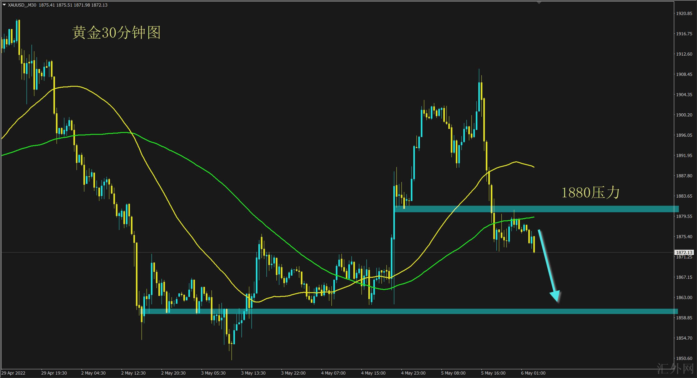 黄金1880空,止损1887,计划1860-1850 (仅供参考,并没有组成事实切入位)