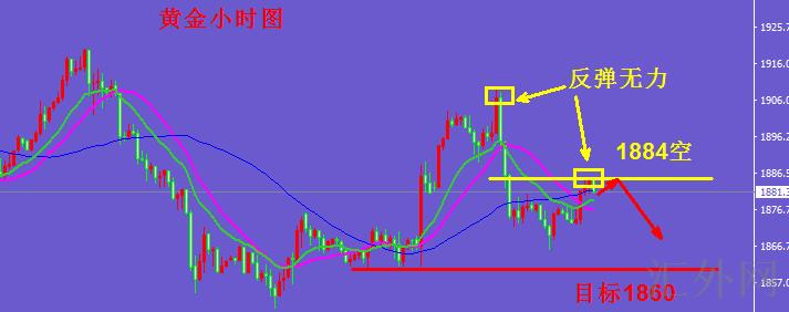 黄金1884空,止损1892,止盈1860