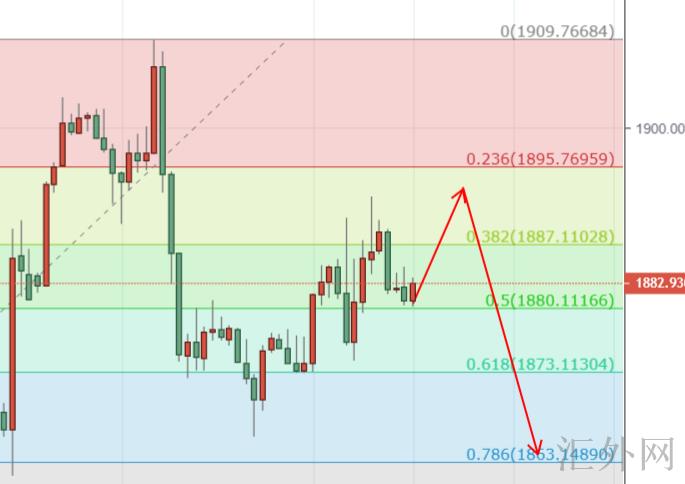 黄金下周交易参考:等候回弹1895左右买跌,损位1911,下看1884-1876阶梯计划;多单等下周开盘给出。