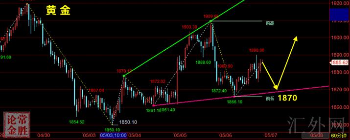 交易参考:周初注意1880一线反映,不破买涨,假使震荡1874左右多,无意中见1850持续多,计划1887-1897突破看10美金以上,具体可以参考上面的分析。