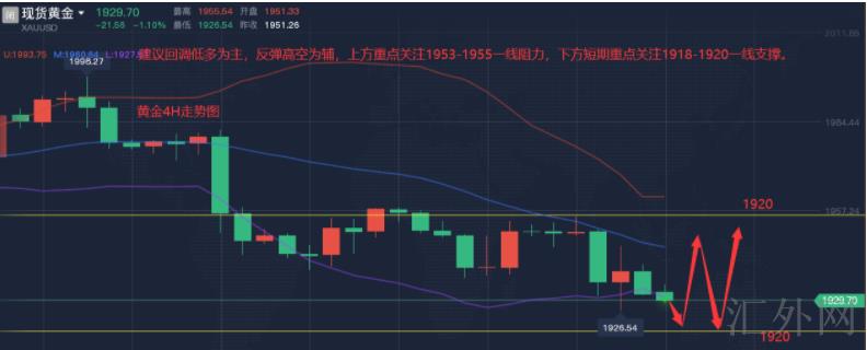 从黄金4小时图看,黄金低位渐渐抬升,昨日黄金价格大幅回弹在修复跳缺口口后遇阻回调,当前价格尽管回调程度较大但前低支撑仍未跌穿,代表着低点回弹形态任然存在,而且MACD指标双线仍未成功发出死叉变盘信号,所以假使黄金价格能够成功防守1865一线位置的话,后市任然有持续保持回弹行情的机会。1小时级别黄金昨日暴跌,今日黄金又一次摸底回涨,但回弹强度有限,并没有迈出强劲的上涨击穿行情,日间整体向上瞧属于对昨日的修正,综合来说,黄金慷慨向依然是卖方,短线黄金处在偏多有更深一步上升量能,所以操作上持续高空布局为主,低多辅助。上方注意1910压力;方注意1865支撑,