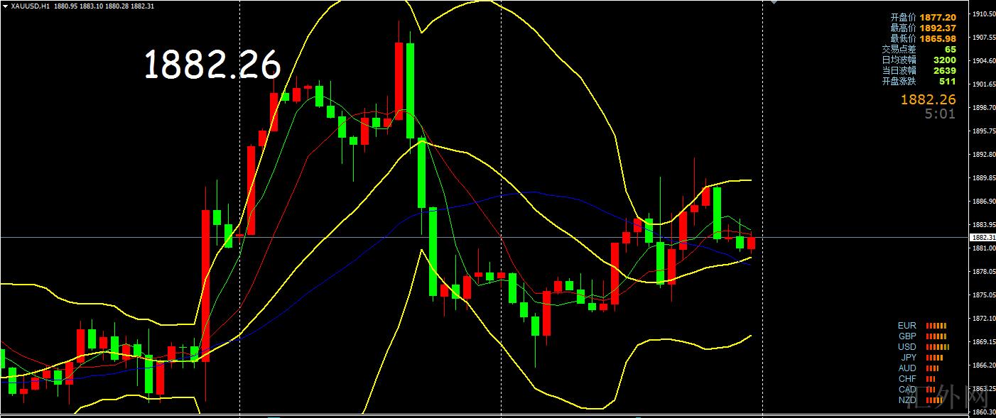 从黄金4小时图看,昨日黄金价格大幅回弹在修复跳缺口口后遇阻回调,当前价格尽管回调程度较大但前低支撑仍未跌穿,代表着低点回弹形态任然存在,而且MACD指标双线仍未成功发出死叉变盘信号,所以假使黄金价格能够成功防守1865一线位置的话,后市任然有持续保持回弹行情的机会。综合来说,下周黄金短线操作上推荐回踩买涨为主,回弹买跌为辅,上方注意1905-1910美元一线压力,以下注意1866-1860美元支撑。