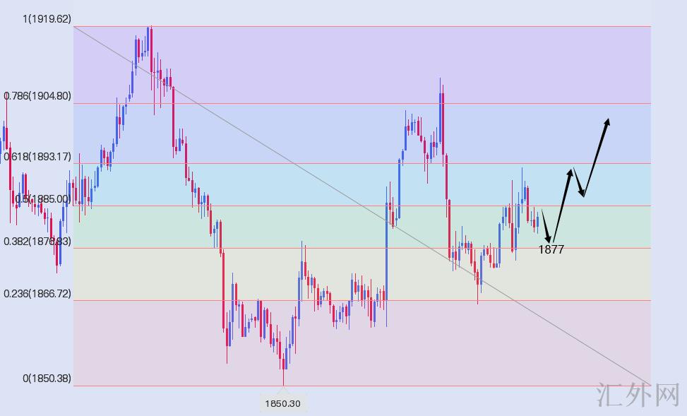 黄金操作策略分享:推荐回踩1877多单进场,计划1892-1905;止损1870以下;