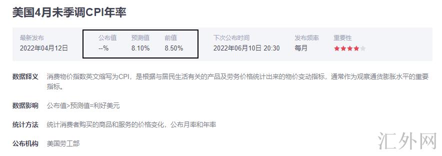 既是这样,我们的目光便不能盯着现有的行情来分析,纵观这周,唯一适合我们关注的便是美国CPI通货膨胀报告(CPI又名消费物价指数,是与居民生活相关的产品及劳务价格统计出来的物价变动指标,一般作为观察通胀重要的指标)