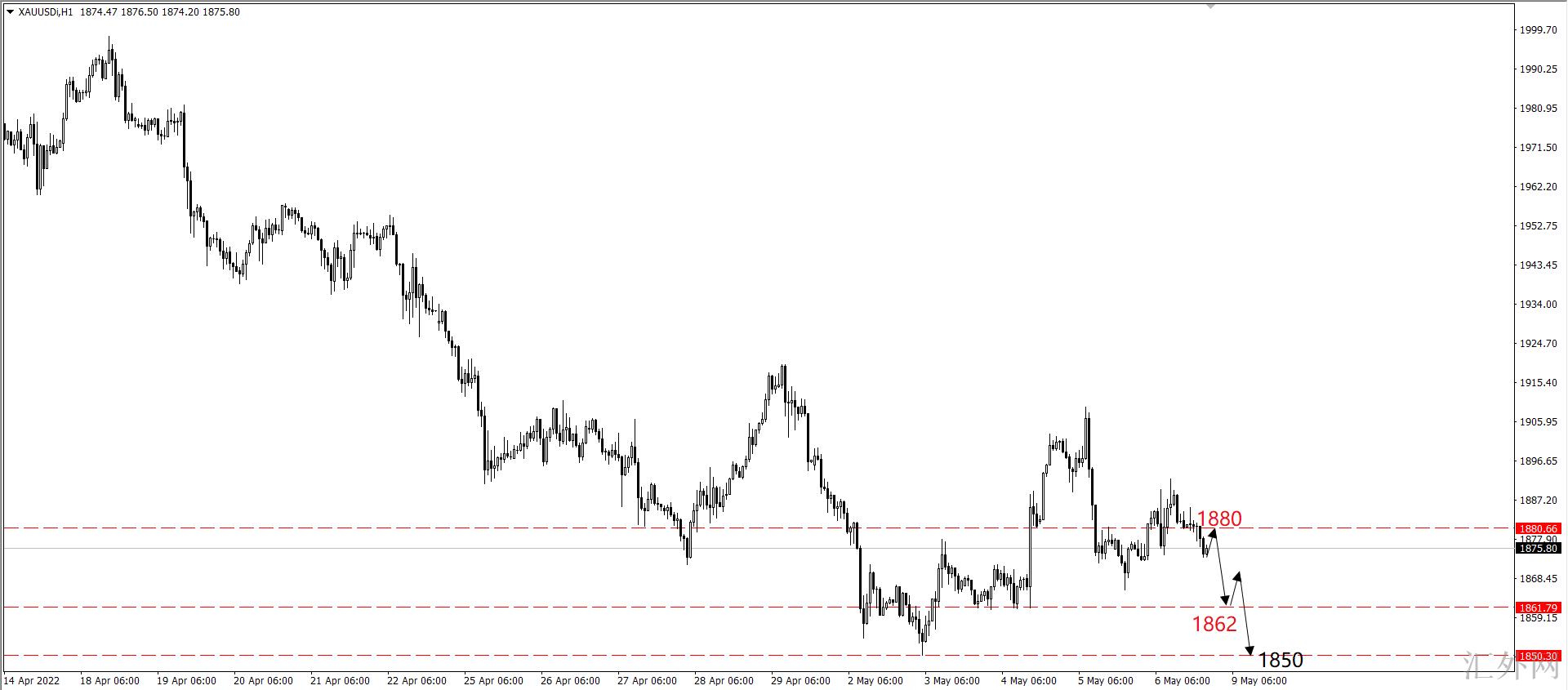 基本分析尚是这样,技术角度也必然会形成共振。上周我们预计黄金会抵达1890美元显现下挫,当前行情已再次回调到1875,形成了高位下探以及多重共振受压看跌的环境,预计日间黄金会形成震荡缓跌的状态莅临市场。
