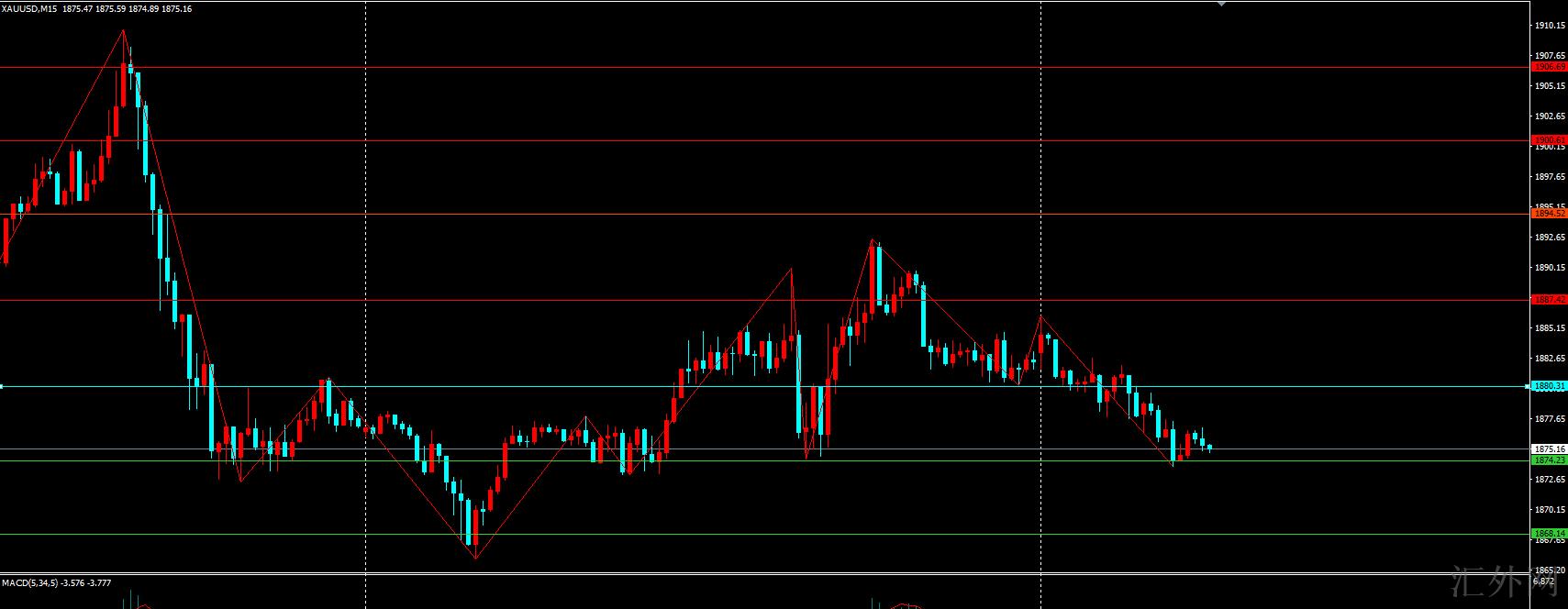 同期二轮1885/1890空单也成功成交,在星期一开盘时段再一次予以1875美元