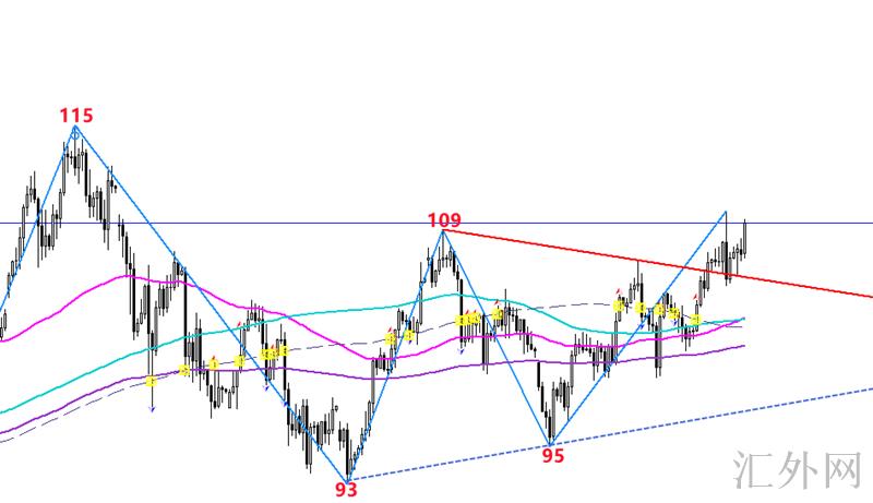 因欧盟威胁今年禁止俄石油进口,欧盟国家应在将来6个月内禁止进口俄原油,并在年末前禁止进口所有成品油,这或许会令本已遇阻的世界原油提供情况更深一步缩紧。原油最近环绕三角形整理形态中震荡,导致当下原油回弹回涨已经击穿了116—109下探趋势抑制点,买方显得偏多了,而且回弹到110关键点位左右。日K线布林上缘又有往上开口运行态势,MA5—MA10均线呈金叉态势,加上世界原油提供情况更深一步缩紧,那么今日操作上以回踩入多为主,上方注意110阻力和115左右阻力,回踩105左右可多。