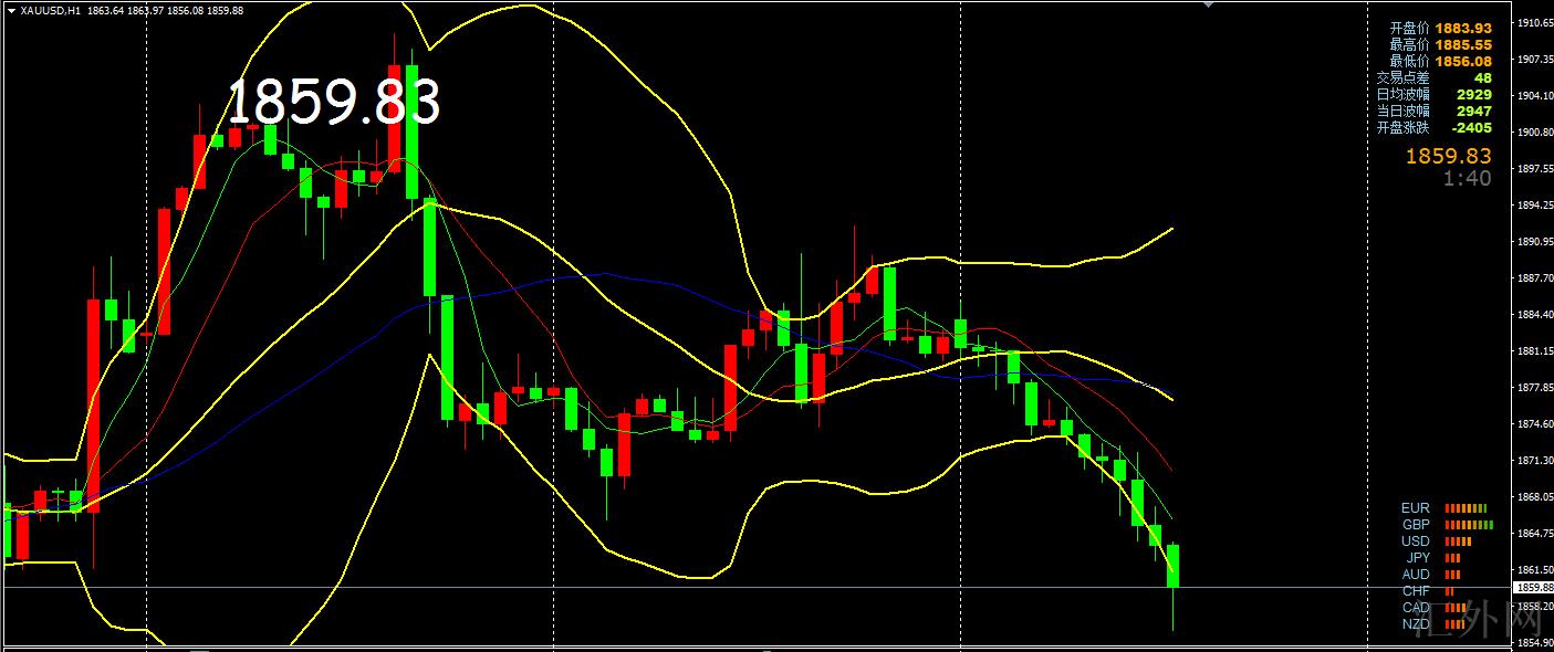黄金今日弱势下探,黄金4月收阴配合以前流星线,愈加清晰了高点阻力,预计五月将保持下跌趋势;周线三连阴配合MACD绿量能放量;日K线也是布林带下缘朝下开口运行,MA5—MA10均线死叉下探,多次回弹也未能持稳1890关键点位,多次冲顶回调。那么综合上来说黄金卖方趋势肯定无疑,当下的回弹回涨预计也是个幌子,所以黄金今日交易参考上推荐以回弹高空为主,回踩低多为辅,上方短时间注意1878-1883一线压力,以下短时间注意1840一线支撑。