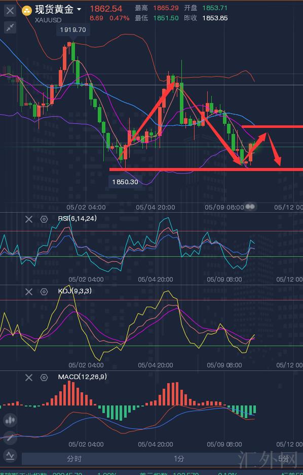 星期二(5月10号),黄金现货窄幅震荡,勉强守稳1850关键点位上方,受于市场预计美联储将执行更激进的政策,美元守在在在差不多20年新高左右,使黄金价格遇阻,另一面,市场对俄乌战局更深一步升级的预计遇冷,打压了地缘局势忧虑,降低了黄金的避险买需,星期一黄金价格大幅下挫。市场广泛觉得美联储会是世界最激进的中央银行,美元指数仍有更深一步上升空间,这对黄金价格没好处。
