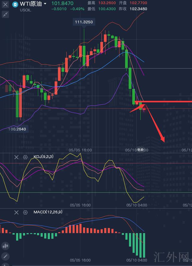 原油更深一步下挫,现报得101.7美元每桶;原油价格星期一暴跌差不多7.5%,因欧盟搁置了禁止进口俄罗斯原油的规划,世界金融市场一直因加息和经济衰退忧虑感觉到紧俏,流行病蔓延加重了民众对供需前景的忧虑,且M股暴跌更深一步牵累原油价格走跌。