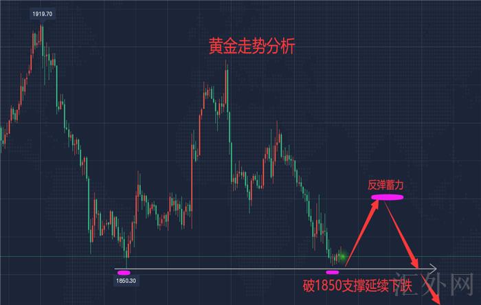 日K线收盘一根大阴K线。第二次刷新低位。同期收盘饱满大阴K线,表明短时间有朝下击穿的痕迹。经历在此之前的回弹修正和整理拉锯蓄势,又一次摔低就加大了突破的风险,弱化了支撑的力度,结合K线形态的收低,饱满大阴有保持。今日更深一步看破低下探。最近黄金交易需顺势买跌为主。技术分析表现也这样,日K线在星期一收大阴,直接贯穿5,10日移动均线,均线朝下发散,布林下缘开口,整体呈现极弱表现,日间趋势确定是空,交易也只需求回弹买跌即可,上方关注单边均线抑制在1870,亚欧盘休整震荡,然而1870可顺势买跌,至于星期二能否有新低,则看市场具体表现,破1950,以下极限位置在1828。小周期表现倒没有那么极弱,不适合追空交易,H4周期和小时线周期均为弱势,但有回弹的基础形态,H4单边抑制点亦在1868左右,跟日K线表现的差不多统一,所以,日间看跌不追空,操作回弹空,等候1870高点空,美盘假使不破1850看震荡,突破1850再看新低1830左右。