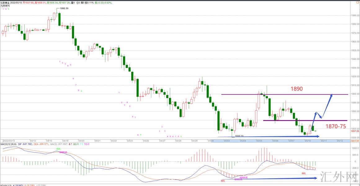 当前上方重要关注的位置在1870-75这里,其次就是在上星期五高位1890这里。