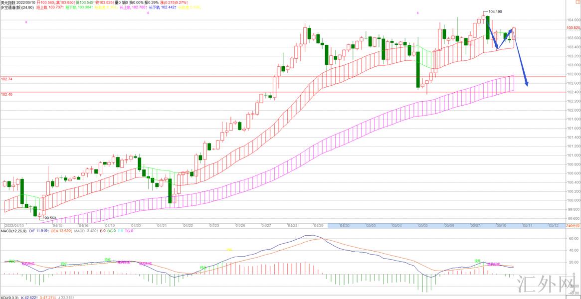 美元这里,需求关注以下通道支撑区间这里102.7-102.5这里。