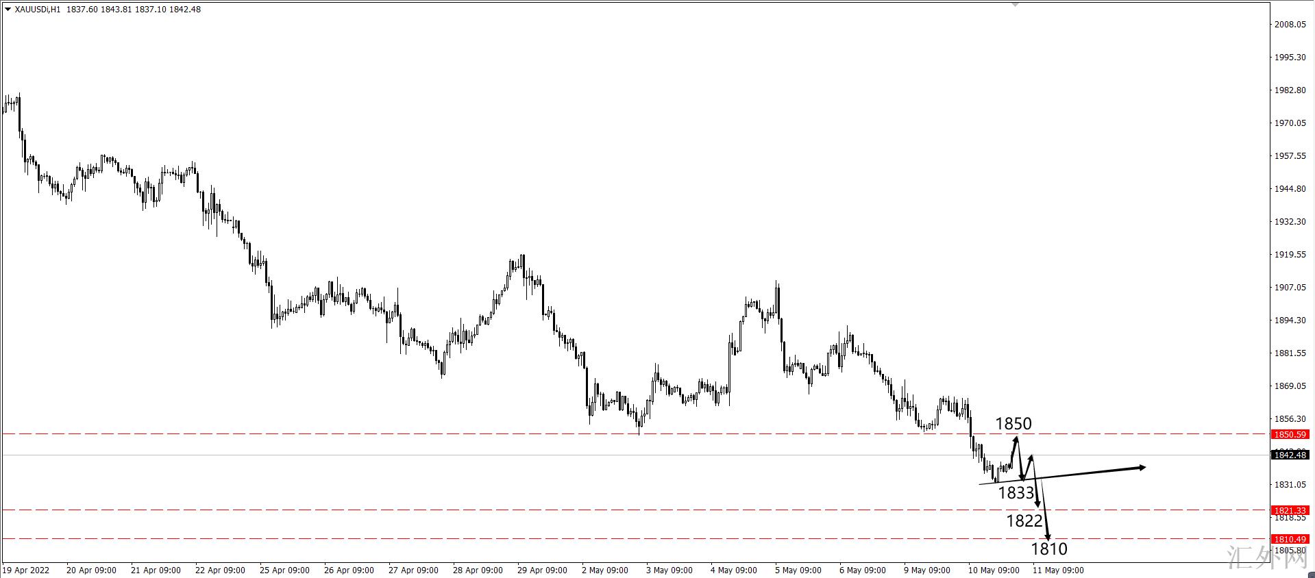 顾虑到这周初黄金已经达到保持下挫,假使通货膨胀报告回调未高达市场预计,黄金短线或许会显现过激性回弹行情,但然而转折点位以前最终卖方继续会占领统治地位,所以针对今天的交易层面,我比较倾向在1850美元关键点位买跌黄金,毕竟此位置支撑了黄金面临多次回弹,它的有效性毋庸置疑!