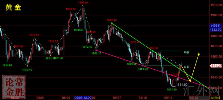黄金行情分析:金价昨日白盘从1852开始一路回弹到1865一线显现回调1856一线;接着整个白盘都保持在1856-1865区间来回震荡;美盘阶段价格多次上冲1865没有成功后显现回调跌穿1850支撑到1841左右,接着价格在在1840-1847区间来回震荡三小时,在收盘又一次显现下挫,早间下挫到1832一线回弹。