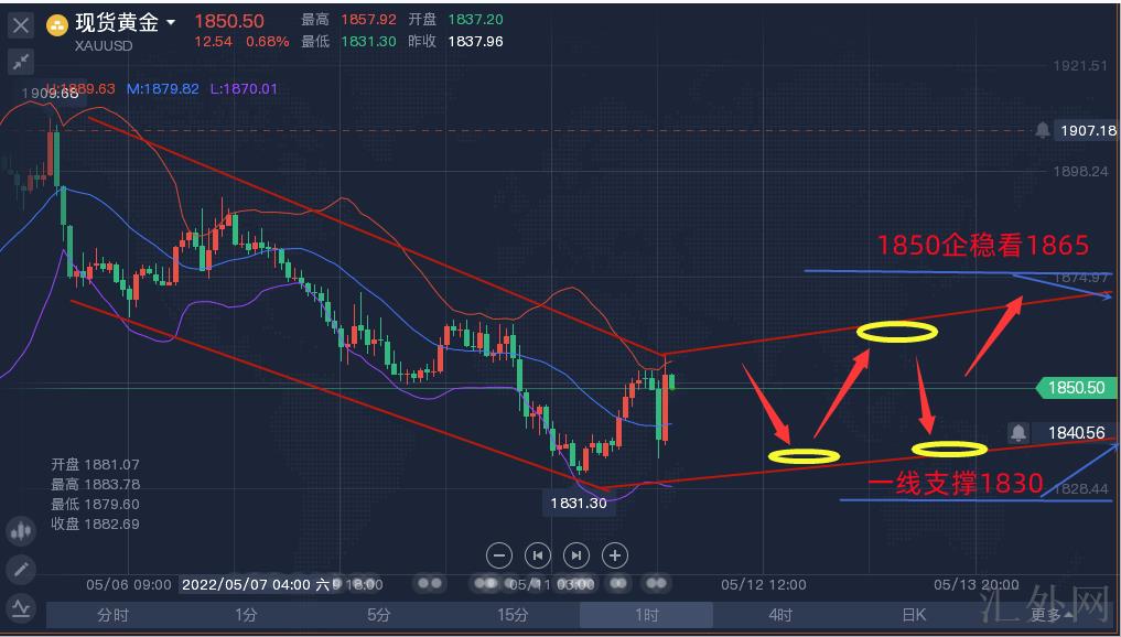 黄金从技术分析来说,黄金昨日更深一步收盘下跌,如昨日预计统一,日K线大阴K线收在低点后面,隔日整理蓄势突破低位是大约率事件。抑制黄金价格回弹空间,最终形成放量破低保持,而且收盘在低点,今日亚盘开盘更深一步惯性摔低,日K线收低隔日一般会先走新低,再伴随震荡再保持的走法,节奏就是弱势行情中的单边保持,操作起来也就顺风顺水,也是积攒波段的时机。小利靠震荡,大利靠单边。4小时迈出了低点的弱势台阶下探,伴随回弹高位的下探,回弹强度在减小,弱势单边的更能在放出,伴伴随长时间整理再更深一步蓄势破低。而破低后面,今日的压力在1850.也就是顶底转换点,昨晚破低后面在此处略有停顿,最终收低,今日早间直接下挫再奠定弱势。短线依旧看跌不变。日K线今日下挫后会靠近年线的支持。今日刷新是第一次刷新,或许仍有回弹。但顾虑到4小时的台阶形态,在未击穿次高位以前,维持回弹买跌思路不变,击穿反转再调动思路。综上所述,黄金今日交易参考上刘煜铭推荐回弹高空为辅,回踩低多为主,上方着重注意1860-1865一线压力,以下短时间着重注意1830-1825一线支撑。