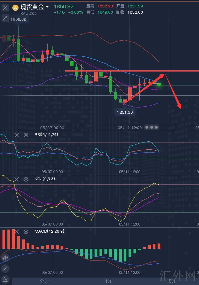 黄金策略:激进派1856-1858买跌,稳健者1865-1867买跌,止损四个点,计划看1830-1835!