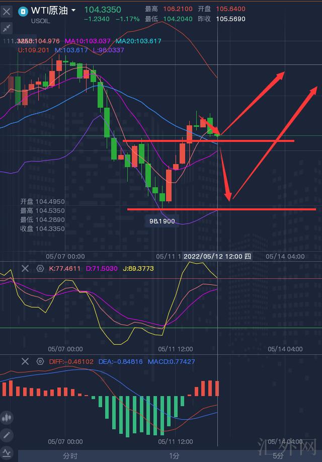 原油策略:激进派104.2-104.4买涨,稳健者98-98.5左右买涨,止损10个点,计划看110!