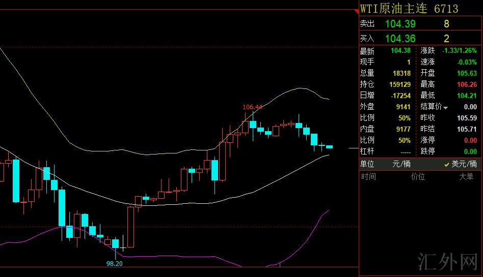 WTI原油昨日给出105左右空单,最高回弹106.44名置,106.8补空没能进场,当前来说原油短线呈现卖方,昨日进场的朋友持续持有即可,未进场今日维持高空不变。