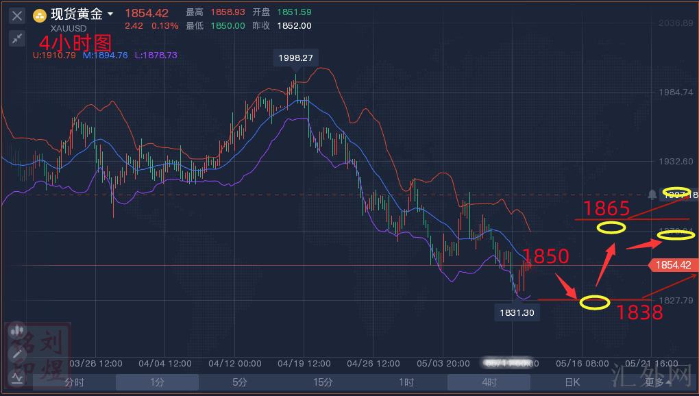 今日亚盘价格先驱回弹到达四小时生命线位置也是昨日的回弹高位1858区域,关注保持性困难,随后参考上面提到的三个支撑压力点位执行区间的切换,等候机会即可。