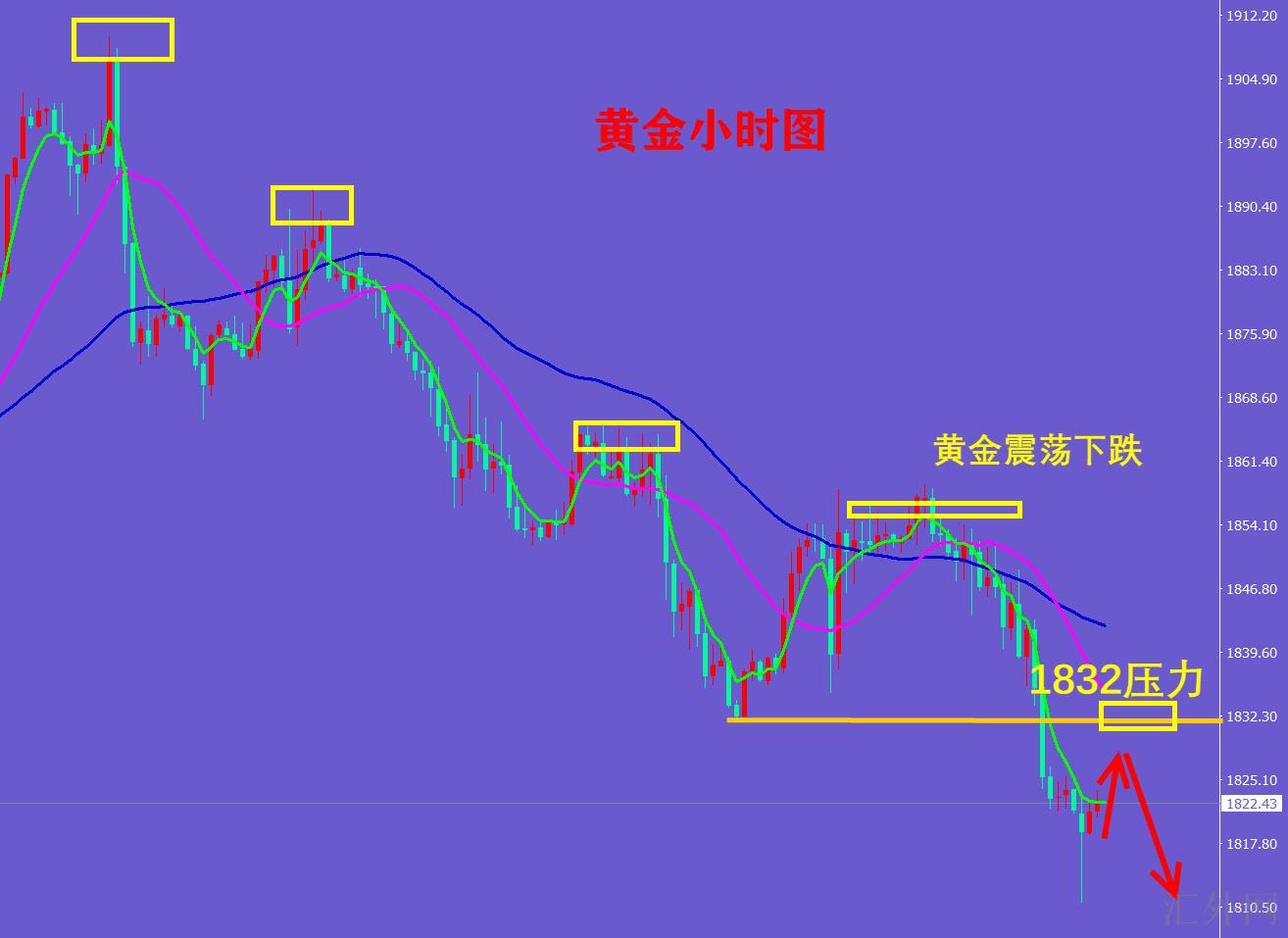 黄金当下依旧卖方下挫行情不变,有回弹实属正常。而且亚盘超跌后回弹,但是保持1832的阻力位置以下运行,没有击穿核心阻力前,依旧卖方下跌趋势。黄金慢阳回弹,没有强劲的推涨,买方强度不足,欧盘持续看空。