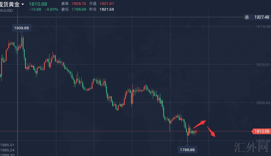 环球黄金星期四面临一整个交易日的卖方杀多,亚欧盘自高点1858一线震荡慢跌,美盘增速下挫,突破前期低位1831-30一线,日间早间开盘朝下刺探1810一线后快去反抽从新夺取1820一线。