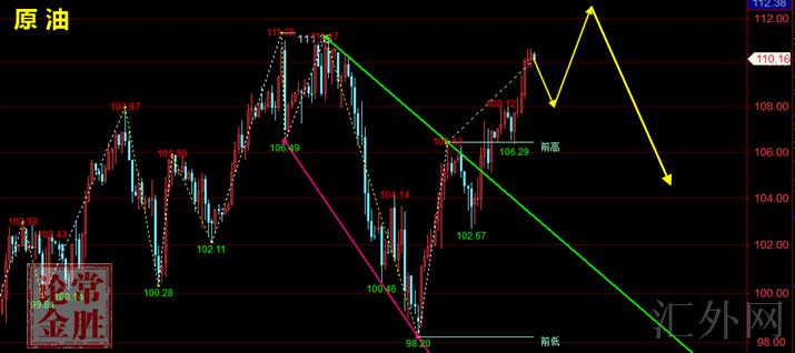 下周原油策略:原油高点110.5中线空,稳健的等111进场,止损111.5,计划看105,突破看100整数关键点位!