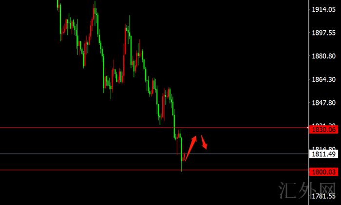 交易参考:1800——1805一线买涨,止损5美金,止盈看1820——1825——1830左右。