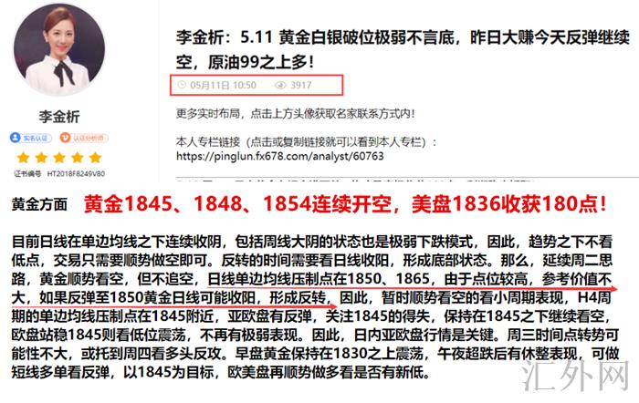5.11 星期三比较惊险,金银坚持看跌,终在美盘顺遂下挫,共收获280点!