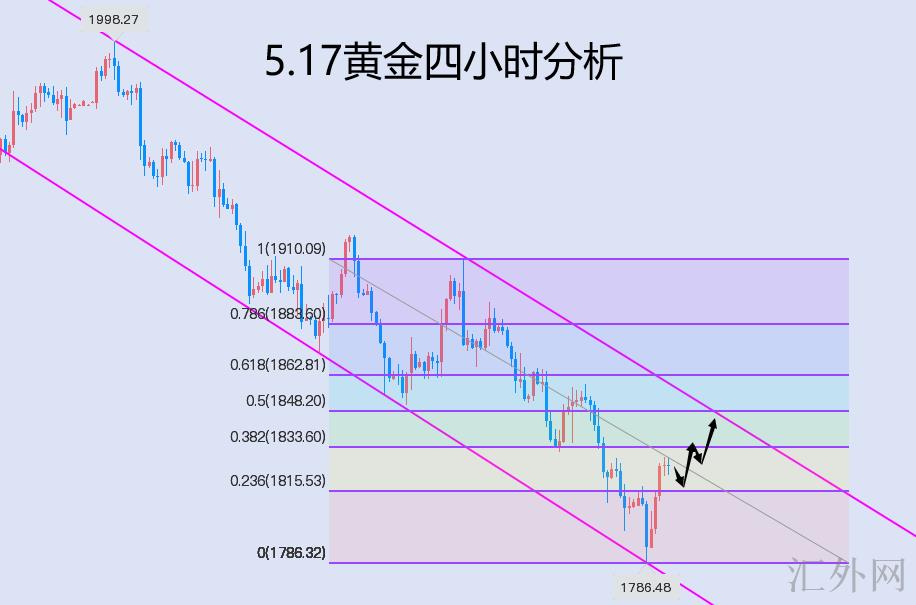 黄金4小时图任然在下挫趋势当中,在刷新通道下缘1785后执行回弹,从K线的回弹强度来说涨头依旧异常强势的直接突破了短时间1817的短时间分界点。所以日间短时间操作将令有技术派逢低做多买涨黄金。从结构上来说,这段黄金从1910-1786的下挫也告一波落,当前行情正在对这段下挫执行修正,依据黄金分割来说,买方起码要上探到1834左右才或许停顿一下,然而该位置将或许大约率被击穿,短时间阻力位置1845-1850-1865,以下支撑:1817-1810-1790.金银、油市交流及盘面指导主页添加金源