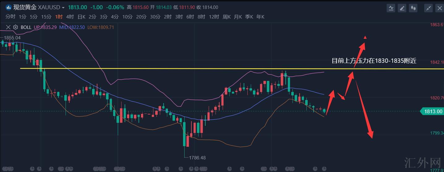 推荐回撤1812-1810多单分批进场,计划1822-1832;止损1800以下;