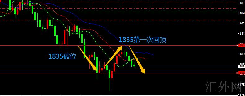 回顾昨天的行情,我在昨天的策略中给出1833-1835空,止损1838,计划1825附近。夜间涨情最高运行到1835.8后一路下挫到1812.7。在这里我发现一个困难,行情到达1830上方的时机有人仍在追多,尽管上方有极少的盈有好处空头间,但总体风险来看,风险大幅大于盈有好处空头间,所以像如此的做单方式是不可取的。仍有不少伙伴不能理解为何我要在1833-1835的位置布局空单,其实在这里我想说的是最近都有看我的文章的伙伴,我相信不难理解我为何要在这里布局空单了,1833-1835在上星期四强劲朝下击穿后没有去回顶这个位置,直到行情向下探到1788-1790这一重要的关键点位位置后到昨天才首次回弹1833-1835这一区间位置,那么在我前面的文章中我有提及过,一个重要的关键点位位置假使被强劲朝下击穿或者往上击穿后,第一时间回顶或者回踩的话就是我们入场买涨和买跌的时机,所以这就是我为何昨天能在文章中比较大胆的给出这个位置买跌的原因,我相信昨天跟上的伙伴最少也有7美金的盈有好处空头间吧!!如下图所示: