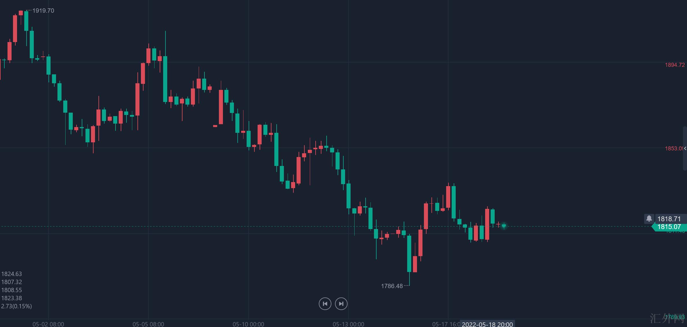 上周黄金遇阻1890保持下跌趋势,而且显现单边下探行情,最多跌向1800关口,下挫程度差不多4%,为2021年6月中旬以来最糟心的单周表现。首要依旧鲍威尔连任美联储主席,受美联储预计将执行更激进加息方式所打压,周线成功四连阴收尾到1800关口左右。这周初黄金呈过山车行情,持续的上演V型反转。星期一先是下探1785低点面临强劲回弹回涨,星期二遇阻1830高点震荡,随后美盘击穿1830到1836高点遇阻,最终收盘依旧跌穿了1820这个震荡低位到1810左右,来了个冲顶回调收尾。