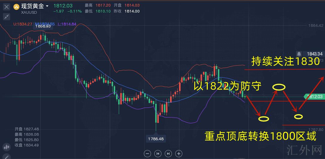 黄金消息面解析:星期四(5月19号)亚盘时间,黄金现货震荡1805-1825左右;