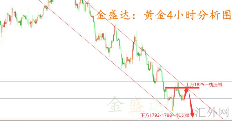 黄金4小时周期收口,经历三连阴后,k线在布林中轨之下,星期三黄金或持续走软,再看布林下缘支撑1800左右,所以仍有一次下挫空间,临时交易尽量以买跌为主。小周期震荡区间很显著,小时线,30分钟都没有开口,上方阻力在1822,1830,以下有较大的区域,综上所述,黄金交易参考上金盛达推荐回弹高空为主,上方着重注意1825-1830一线压力,以下短时间着重注意1793-1798一线支撑。具体操作以金盛达本人实时给出策略为准!手里有持仓的朋友可以及时与我沟通交流,金盛达为你供应许多操作方案!