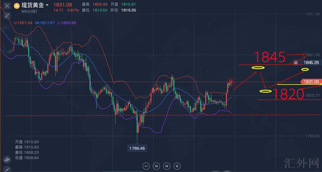 简单理解,今日行情反抽给到1840左右先空,计划看1825左右。若回调不破1820名置,直接反手多,计划看1840-1845名置