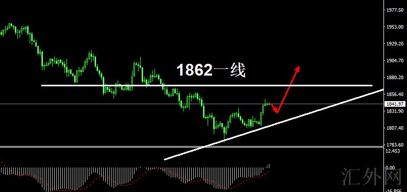 黄金价格四小时线接连大根大阳线,直接冲出震荡区间,特别是冲出1800-30这是震荡区间,50均线均为呈现W底部结构,k线愈加显著的双重底的结构,k线又一次立住50均线上方,直接一步过压力位,亚盘开盘价牢牢守稳底线1835上方,这是夯实上升的活力,以下1833支撑持续多,这也是顶部直接转为底部
