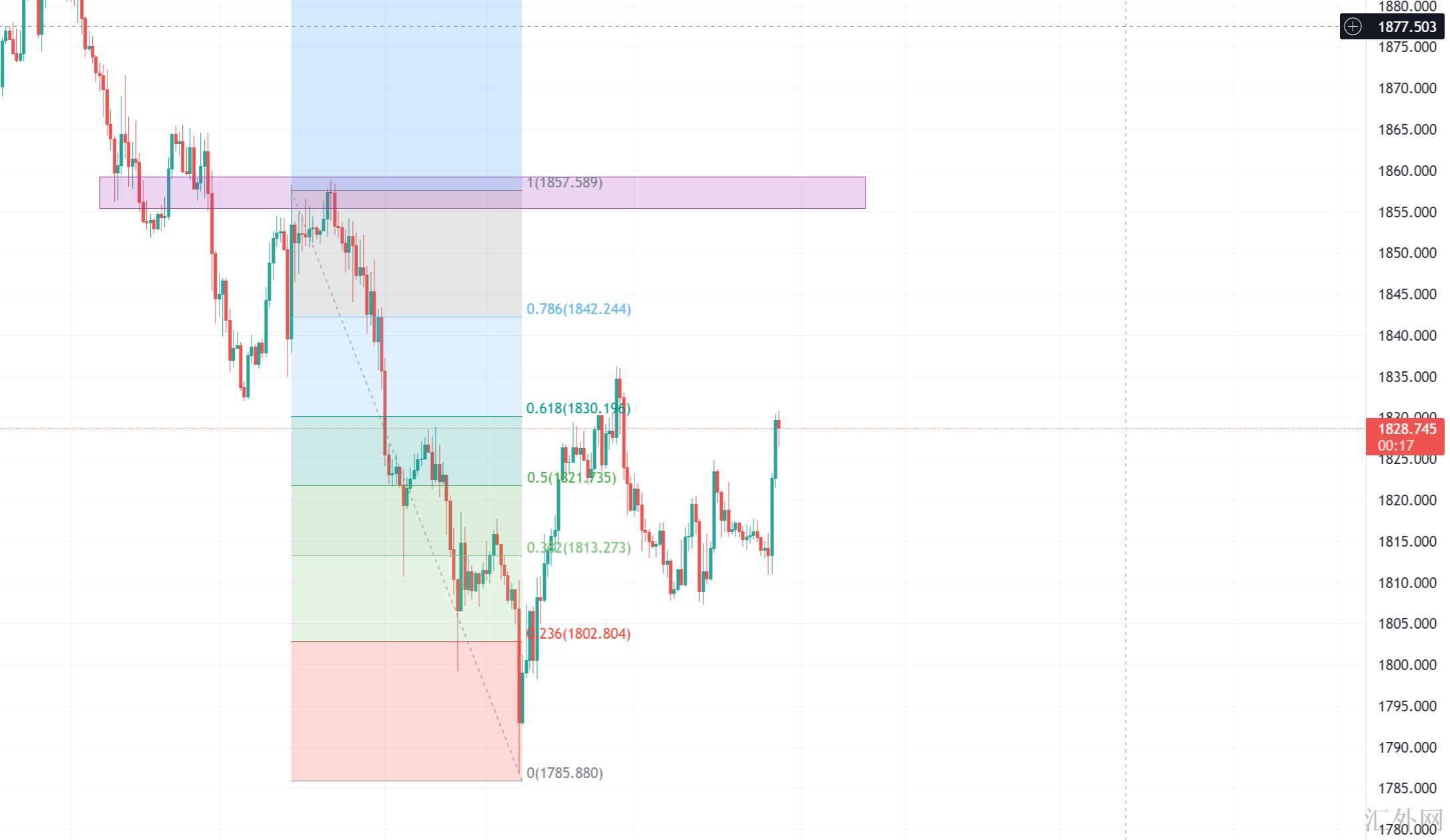 1.黄金当前已经到达 618区域1828-1832 3区域。这里一定要等等 由于1834 35击穿立住上去 就是暴涨 去1855 1860,但是击穿不了这里的话,黄金就还要下来 回撤 甚至去1804 一带。 当前高点盘整整理 预期,美盘8点半前后 会有行情。