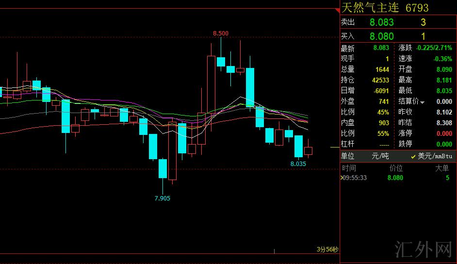 天然气昨日日间给出8.280空单,最高回弹8.230没给进场机会直接下挫,美盘以前回调我们一线支撑买涨位置给出进场机会,低点多单7.950进场后面最高行情回弹8.500差不多靠近最终止盈计划点位。今日来说短线仍有回调趋势,我们依旧维持短线先以高空为主,抵达低点支撑买涨。