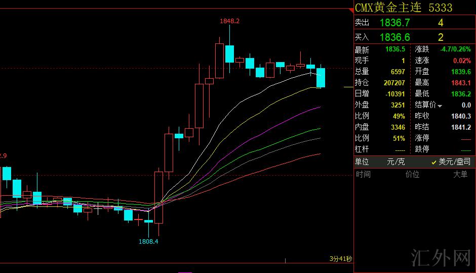 星期四黄金现货大幅上升,欧盘中开放强势上涨趋势,日间最高刷新1849.08美元每盎司,最终收盘上涨1.44%,报得1841.77美元每盎司;黄金最近遇阻1900关口单边下探走跌,黄金当前来说属于连续回调阶段,当前1828属于一线支撑点置,刷新后面预期震荡一个时间段下挫,我们维持高空看法不变。 空单短线进场参考1841可轻仓斟酌进场空单,稳健依旧等候1848买跌,1858补空,止损1865,计划看1822减仓,1813全部退场。