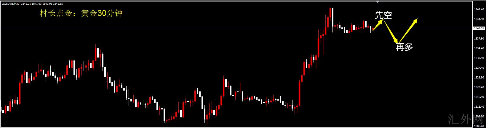 对于今日行情,我的思路就是先空再多,今日依托1850一线压力先空,随后等回踩到1830左右再反手买涨看多,早盘临时是这个思路,欧盘或者美盘再依据行情做调动。