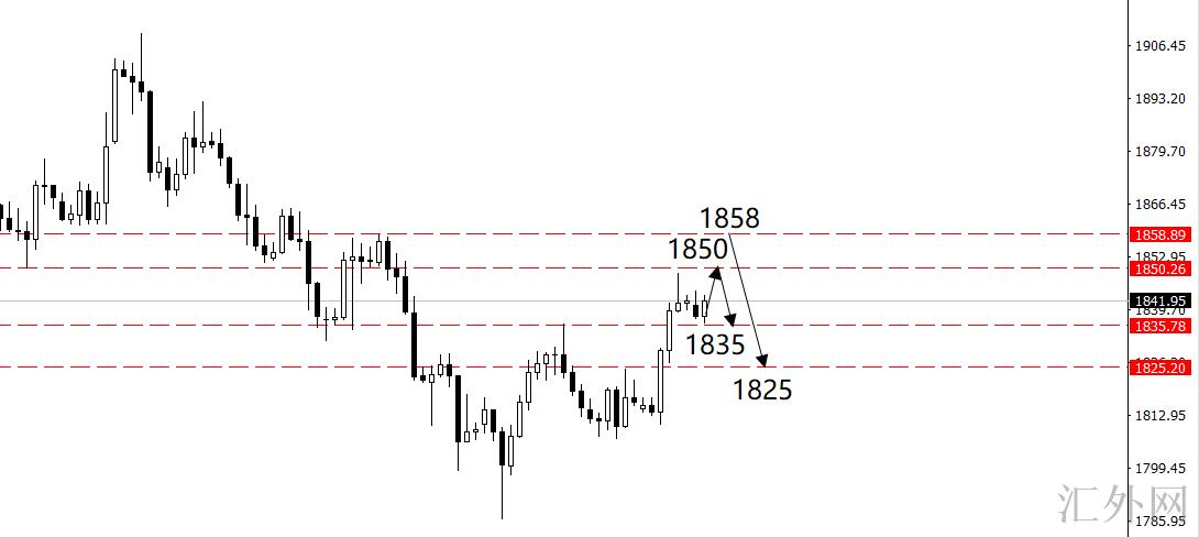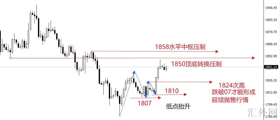 但昨天黄金在早盘时段的调动未能朝下击穿1807,这在4小时级别形成了低位抬升看多信号,促进黄金价格于昨天面临暴发性买方上升,阶段内最多临差不多1848美元关口。但此位置还不能说是黄金的顶部,由于上方两个核心的抑制分别位于1850和1858美元。